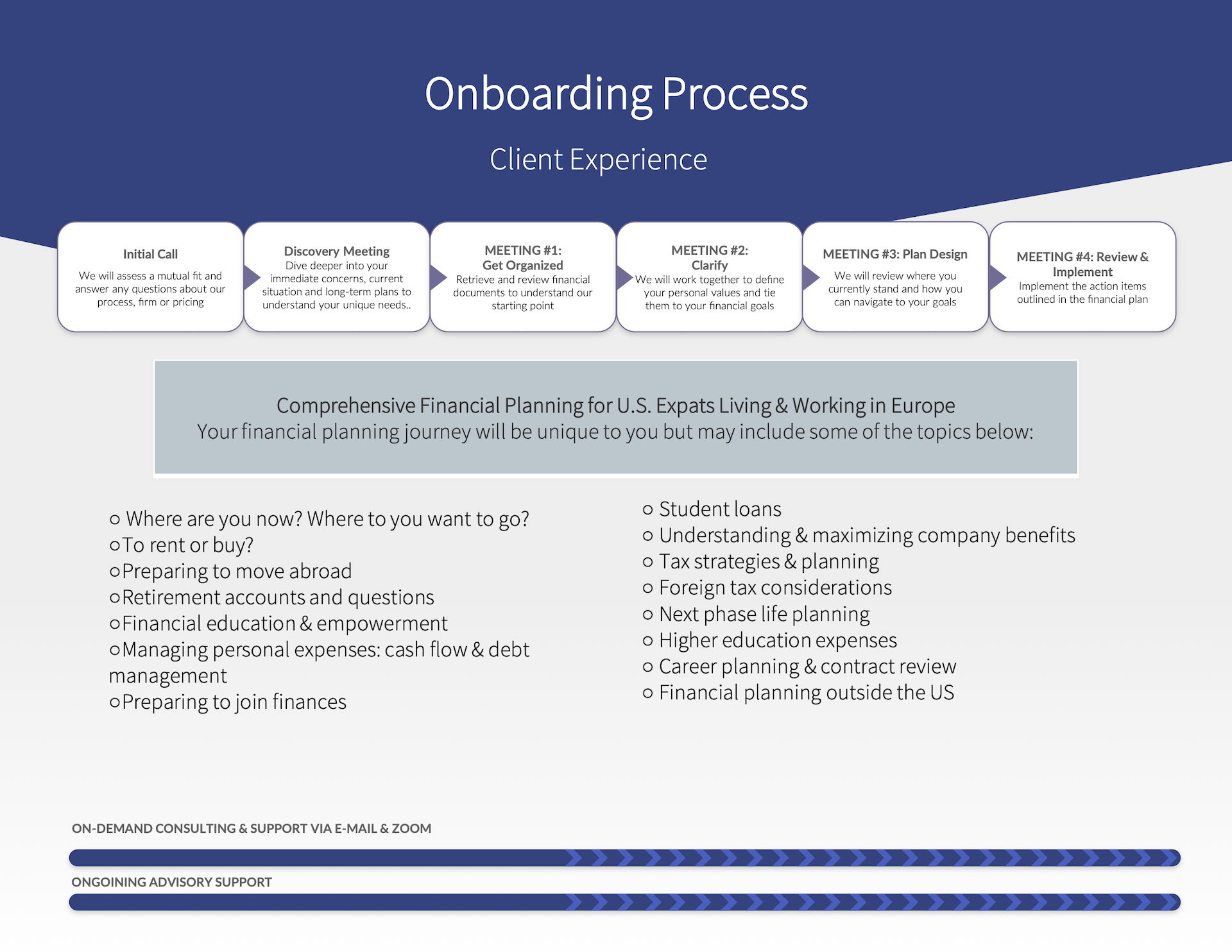 Our comprehensive financial planning services are best suited for internationally mobile U.S. expats and their families: